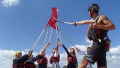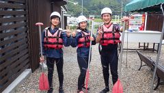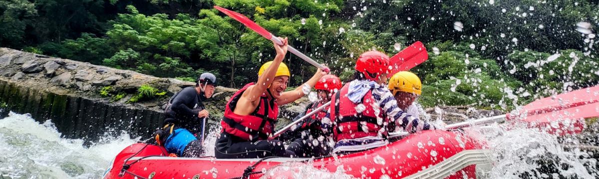 | 【2】1日の説明・案内 | <午前の部>9:00 / <午後の部>13:30 「一日を楽しく過ごすため」のご案内を開始いたします。 ツアーを楽しませてくれる頼もしいガイドの紹介や、一日の流れの説明などをいたします。 RACのツアーはラフティングだけでなく、ボートを使った川遊びや飛び込みなどもします。 詳しくは当日の説明までのお楽しみ! |